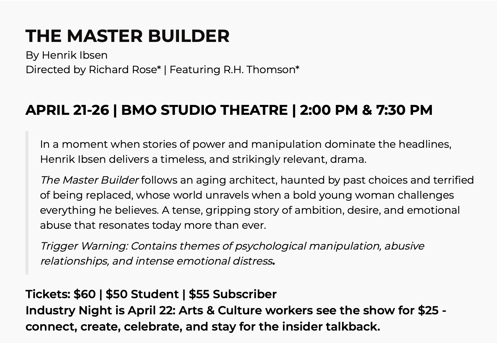Patrick Jeffrey is an actor, writer, and educator on the East Coast of Canada. UP NEXT Learn more Winner of the 2025 Robert Merritt Award for Outstanding Supporting Actor. Animal Farm Touring Now! Click on the banner for more information.